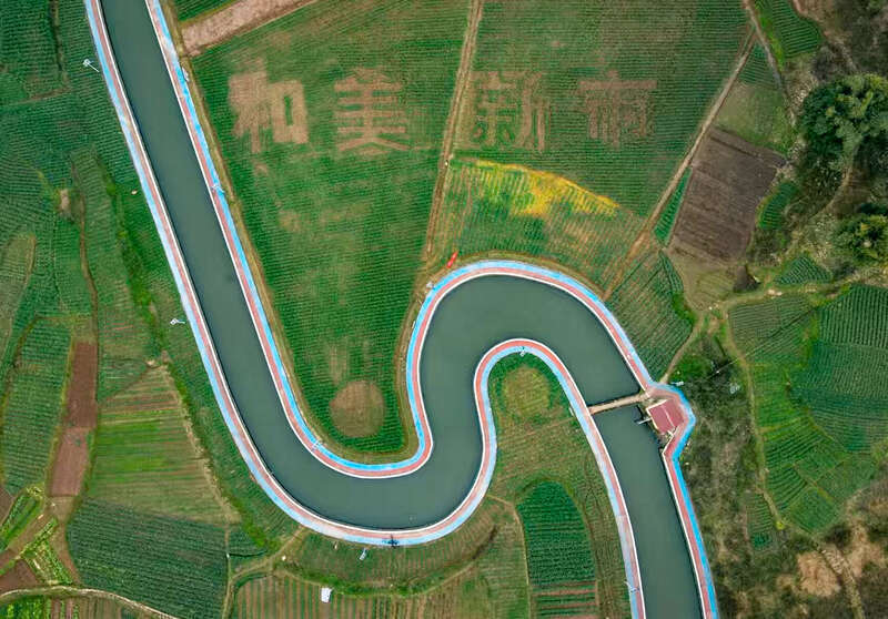 桃花溪纳溪河河道水清如许,油菜花田铺展“和美新市”。 安徽财经大学 叶朋憬/摄
